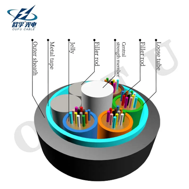 Loose tube stranding, Non-metal strength member, Flooding jelly compound, Steel-polyethylene adhesive sheath